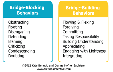 • Identify “bridge builders” and “bridge blockers” to your successful intercultural communication.