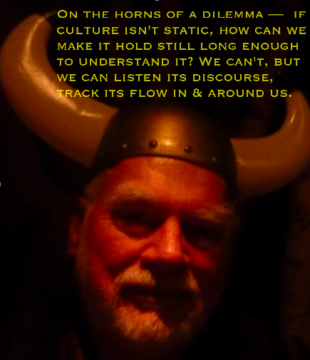 The conversations, the discourse that you listen to is what we call “culture.” In other words we have inherited, built, built upon, and shared such discourse all of our lives. Today I’m inviting you to take a look at it in this new and different way.  Listening is culture speaking.  It is at once process and content. We have inner conversations, discourses about all kinds of things, about our goals, about the people we are, whether we’re how we should be or not. We have basic discourses about such things as: What’s a man? What’s a woman? How to live out my masculinity, my femininity? We have discourses that come from where we are born, the gangs we hang out with, and discourses that prevail at a certain point in my generation, in your generation.