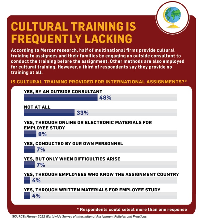 Mercer has released some useful new infographics, based on the findings in their 2012 Worldwide Survey of International Assignment Policies and Practices.