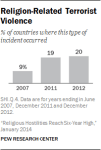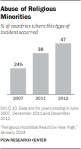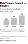 “A third (33%) of the countries and territories in the study had high religious hostilities in 2012, up from 29% in 2011 and 20% as of mid-2007. Religious hostilities increased in every major region of the world except the Americas.”
