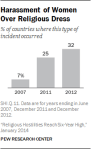 The research is definitely worth reading. The overall increase in religious hostility is driven by certain types of hostility, including abuse of religious minorities, harassment of women over religious dress, violence to enforce religious norms, mob violence related to religion, and religion-related terrorist violence. Click on any photo to enlarge.