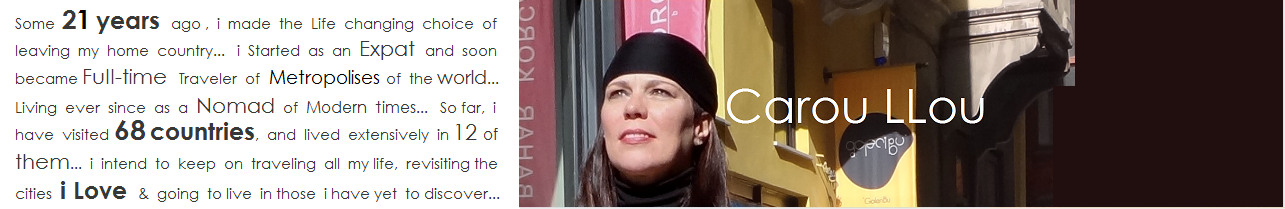I have been fascinated with CarouLLou ever since I met her online about a year ago. She and her husband have been global nomads together for 21 years (and on their own before that). They are, however, unlike any other global nomad I have ever met. Initially they would live two years in a given location—fairly normal, expatriate-type stuff. Over the years, however, as the internet came into being, as communication became easier, as it became possible to rent furnished apartments online, and as visas became more complicated (e.g., non-EU citizens may stay in Europe for six month per year, but only three months in a six-month period), CarouLLou and her “mystery photographer” became more and more nomadic, living in each location for shorter and shorter periods of time. Nowadays, they often stay in a place one-to-three months.